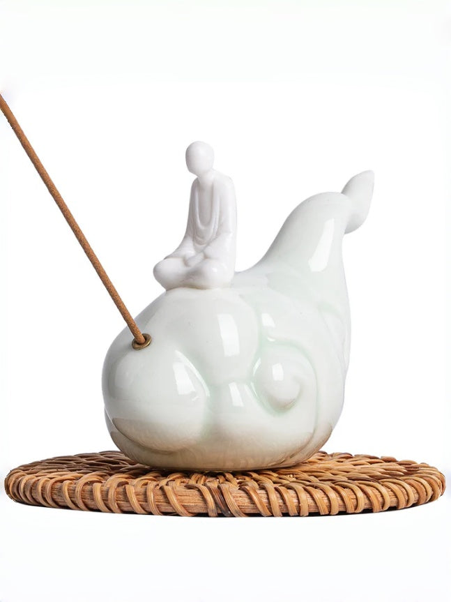 zensoullab Zen Ceramic Formless Buddha Entrance Study Creative Ornament White Porcelain Little Monk Incense Holder Tea Table Living Room Creative Ornament