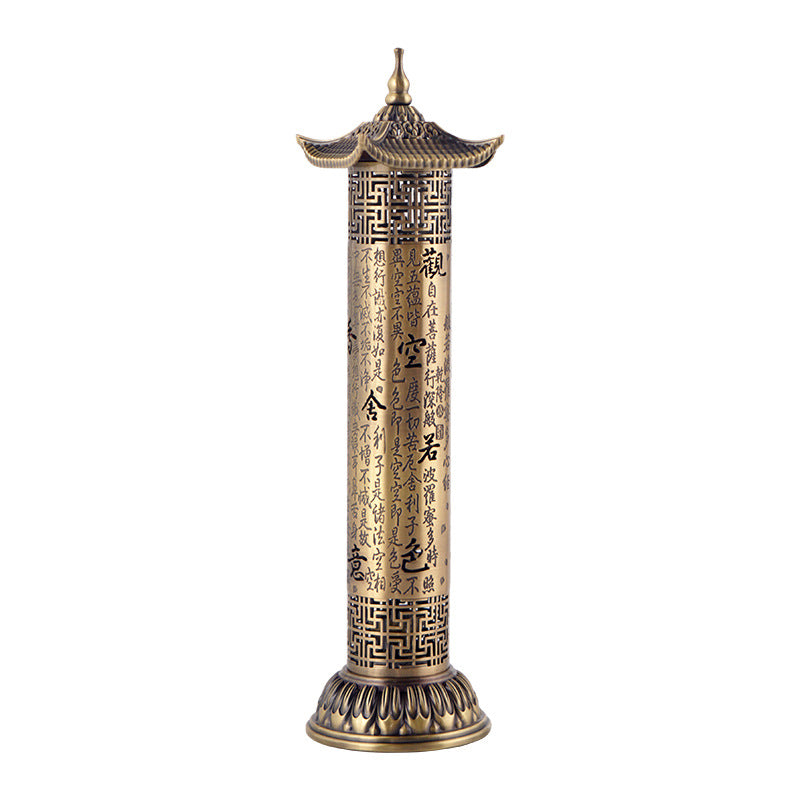 zensoullab Heart Sutra Vertical Incense Burner for Home Indoor Incense Tea Ceremony Ornament Antique Bronze Sandalwood Incense Burner 21cm Incense Holder