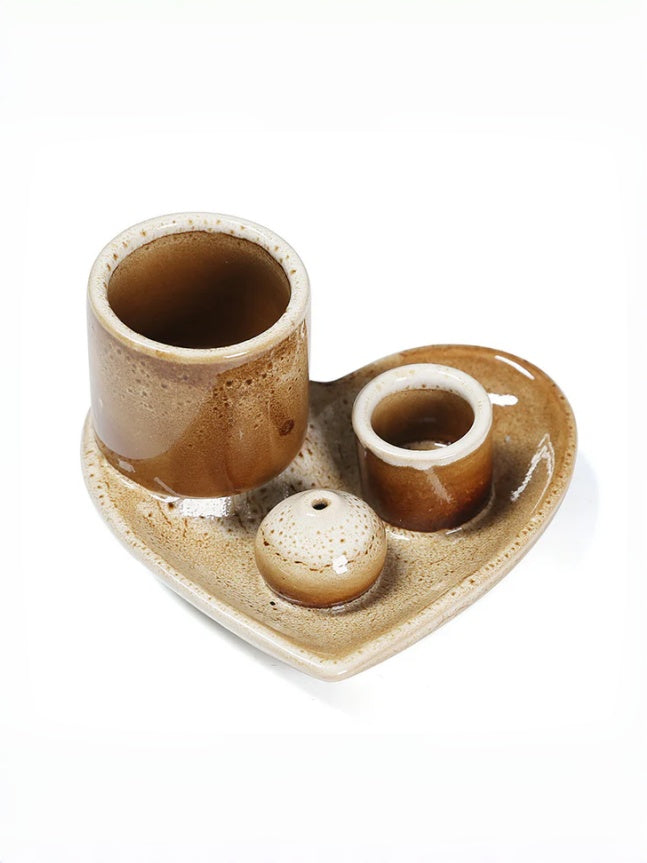 Peruvian Holy Wood Sage Burning Tray Handle Ceramic Bottle Holder Incense Burner