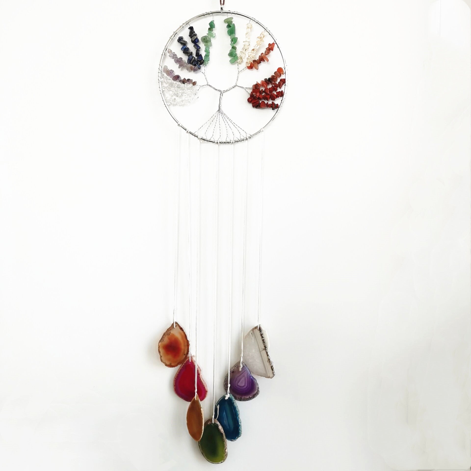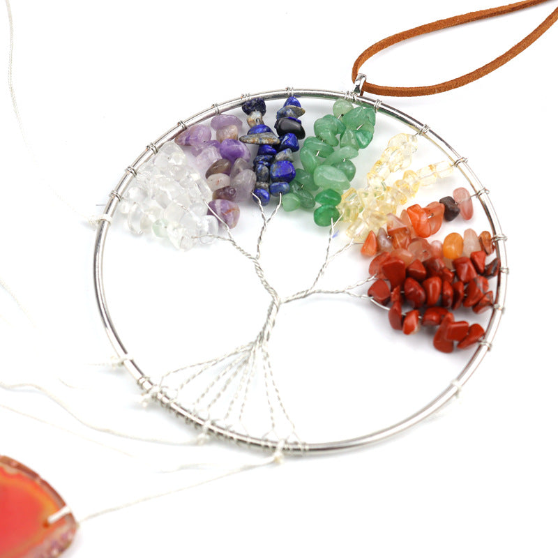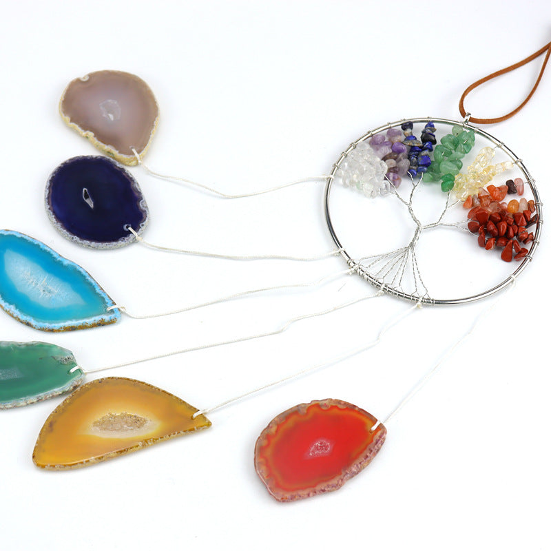 zensoullab Handmade Wrapped Natural Crushed Stone Tree of Life Agate Slice Hanging Ornament Garden Decoration Curtain Pendant