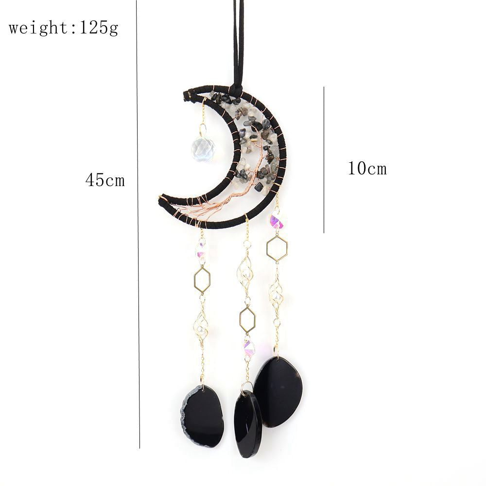 zensoullab Live Sun Catcher Crystal Moon Black Agate Slice Lamp Hanging Decoration Garden Crystal Accessories T28