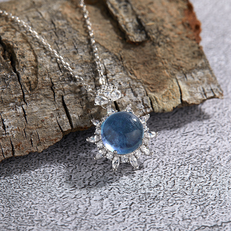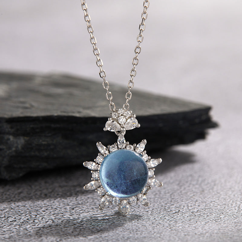 zensoullab French Design S925 Sterling Silver Natural Aquamarine Gemstone Necklace for Women, Personalized Multiple Pendants Fashion Collarbone Chain