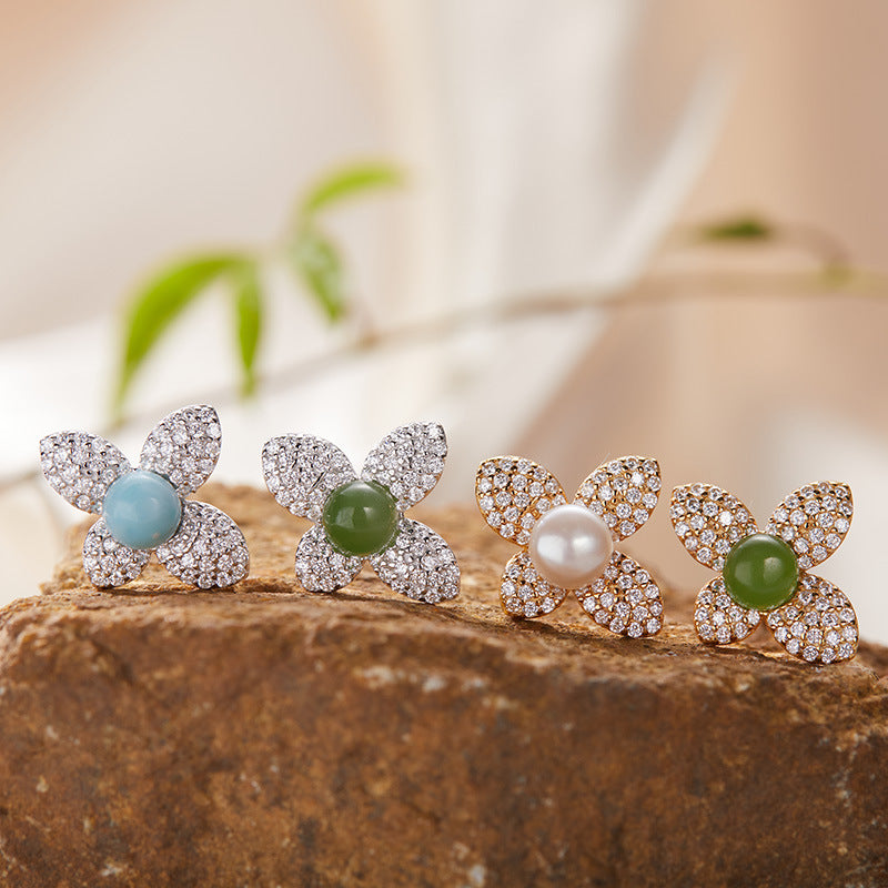 zensoullab S925 Sterling Silver Natural Gemstone Necklace Flower Pendant for Women Korean and Japanese Style Fresh Simple Sweet Collarbone Chain