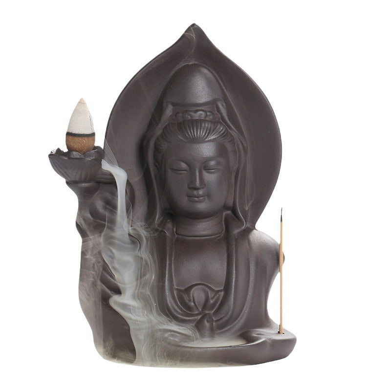 Purple Clay Backflow Incense Burner Creative Guanyin Sandalwood Agarwood Backflow Incense Burner Home Craft Ornament