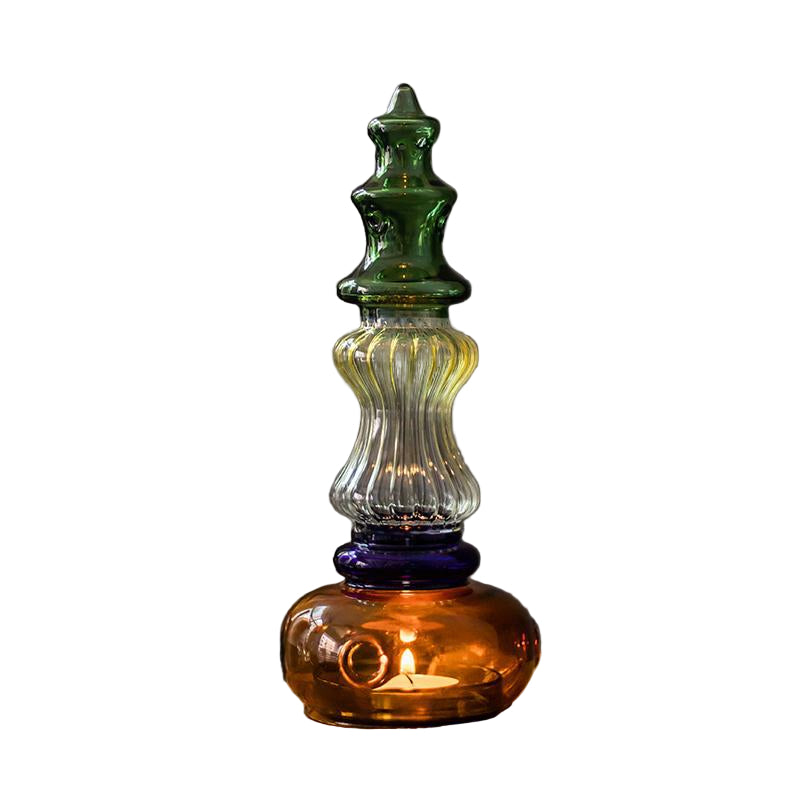 zensoullab Flowing Fragrance Golden Orchid Ming Qing Glass Candle Holder Lamp Zen Tea Room Atmosphere Lamp Home Floor Candle Lamp Decorative Ornament