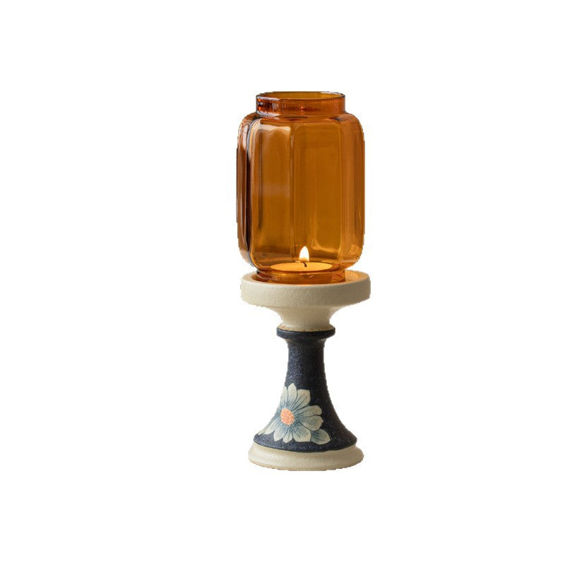 zensoullab New Chinese Style Antique Cloud Pattern Wisteria Glass Ming-Qing Candle Holder Ceramic Home Base Ornament Atmosphere Lamp Stand