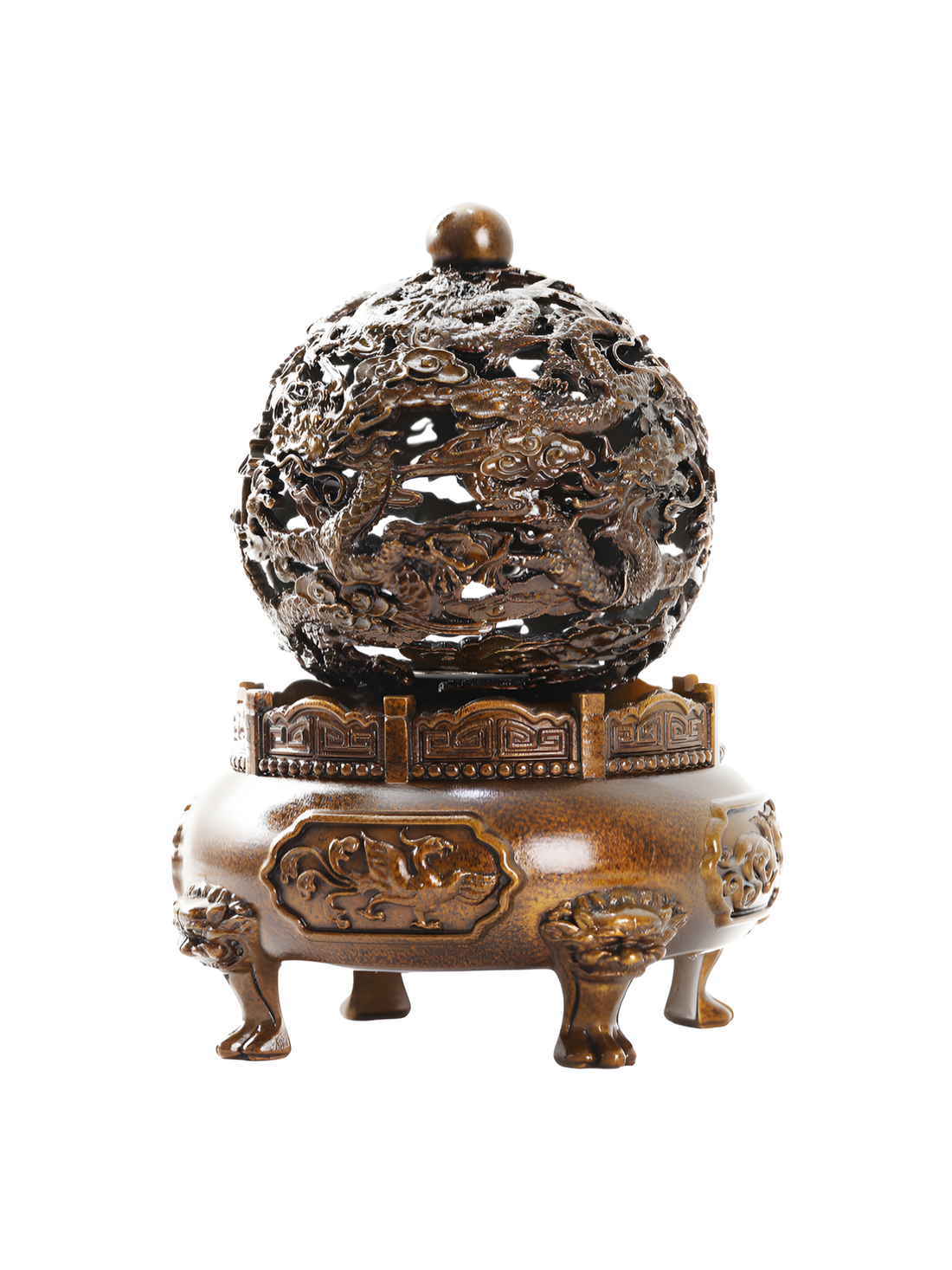 Zensoullab “Dragon’s Fortune Incense Burner” – Brass Gilded Carving for Meditation & Mindful Living