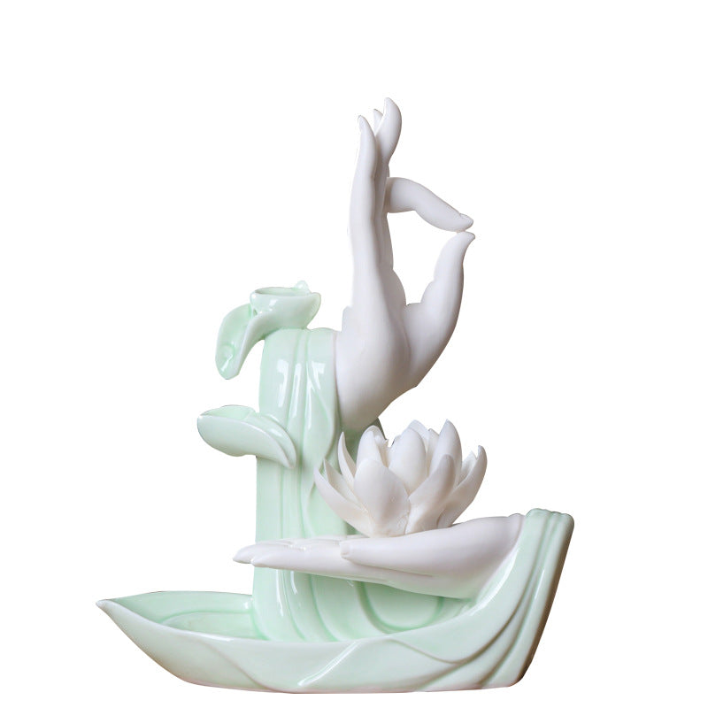 zensoullab Backflow Incense Burner Home Purple Clay Flow Incense Burner Indoor Ornament Ceramic Buddha Hand Incense Burner Home Decor