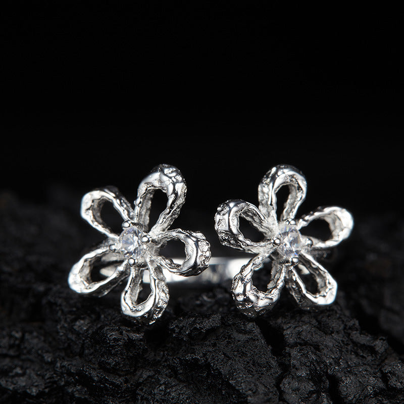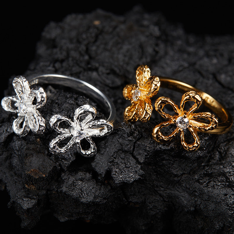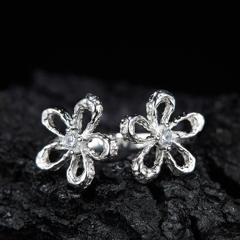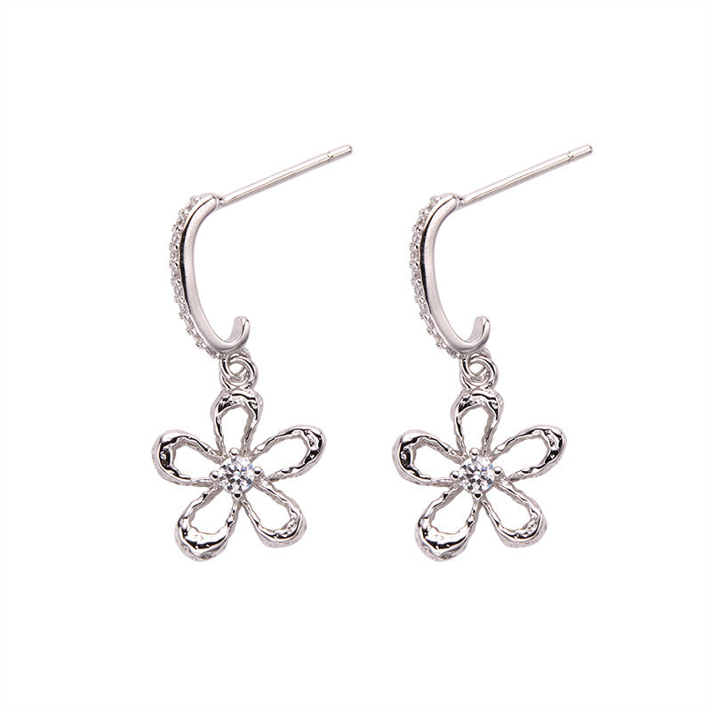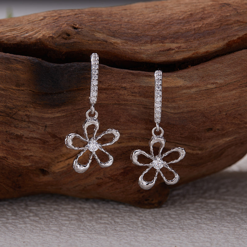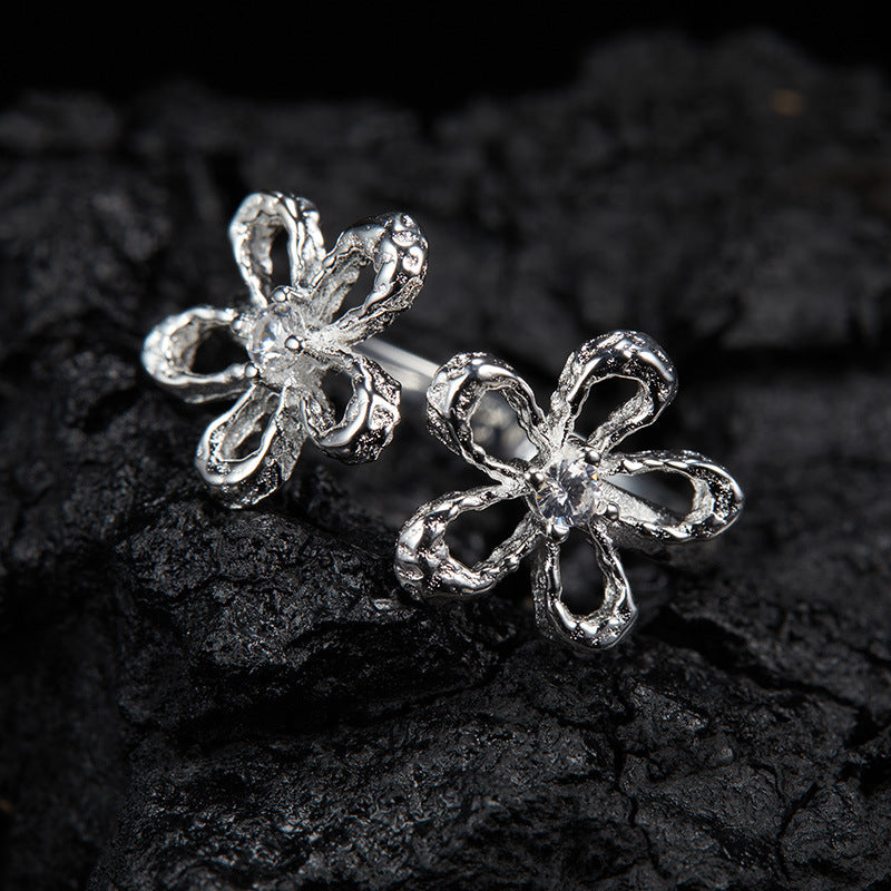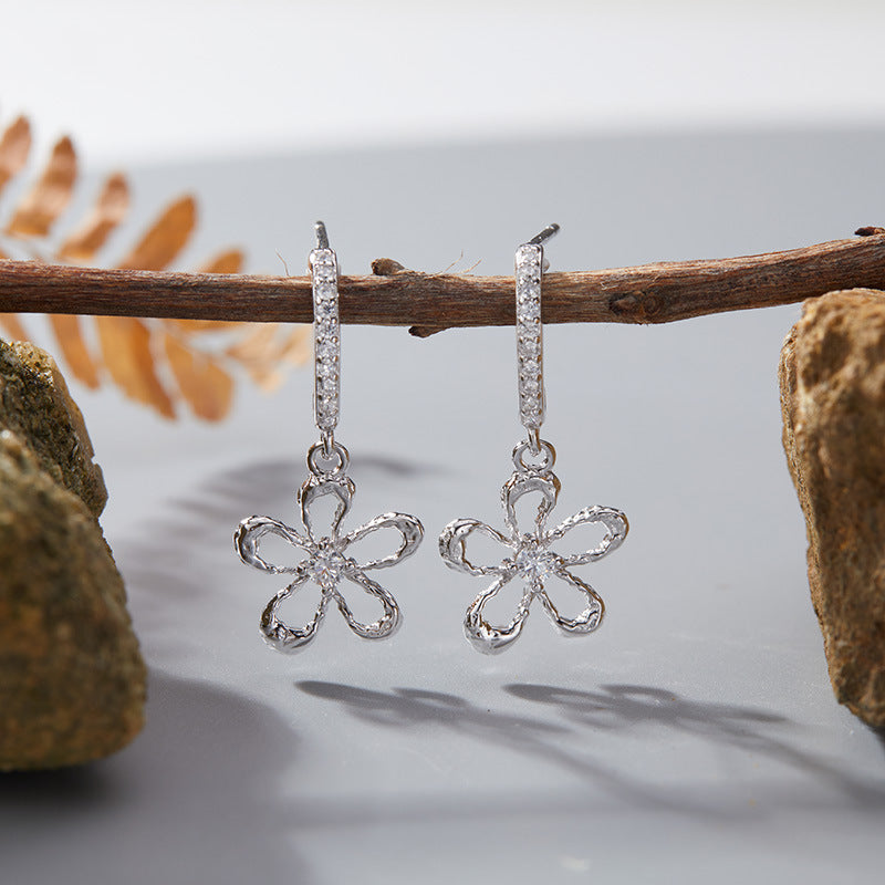 zensoullab Korean Version S925 Sterling Silver Zircon Colorful Gemstone Collarbone Chain Fashion Sweet Hollow Small Flower Pendant Necklace for Women