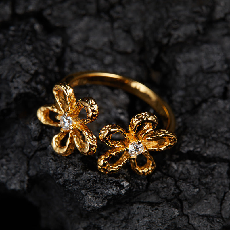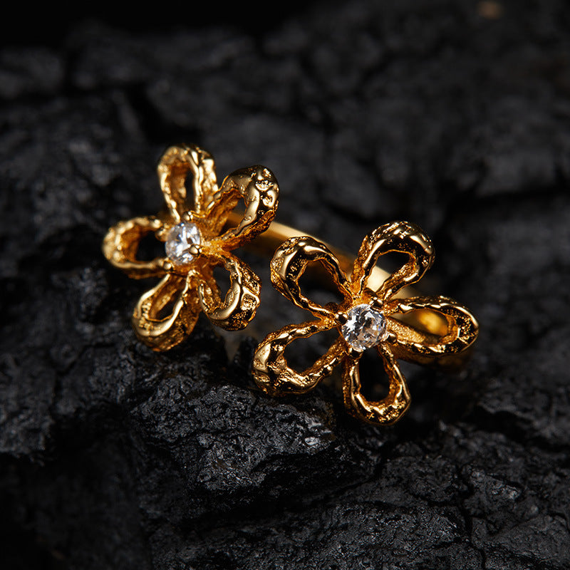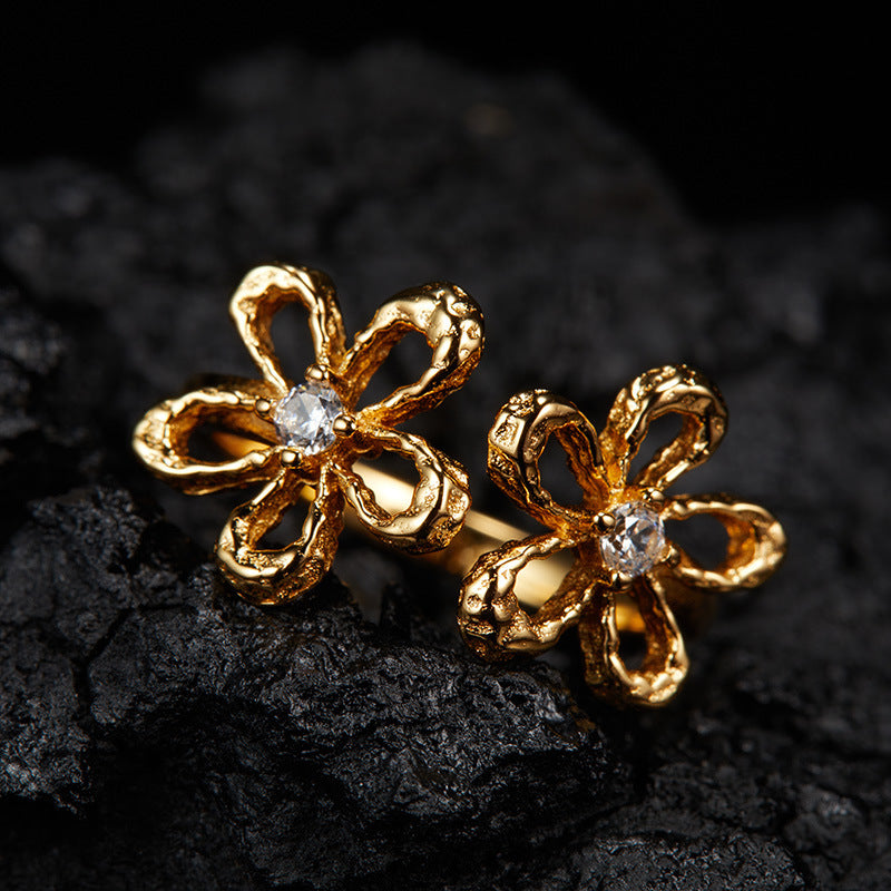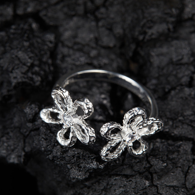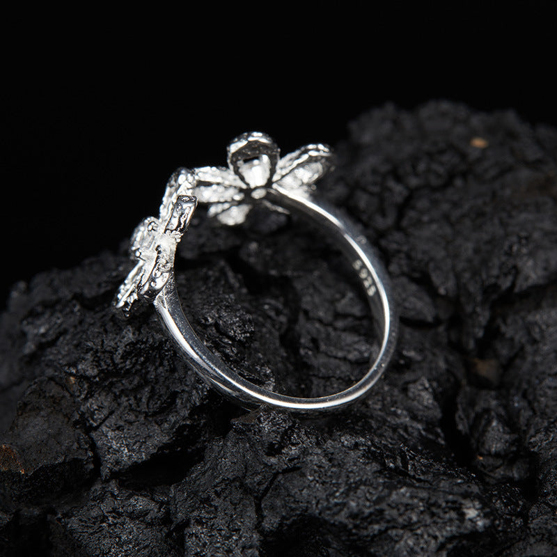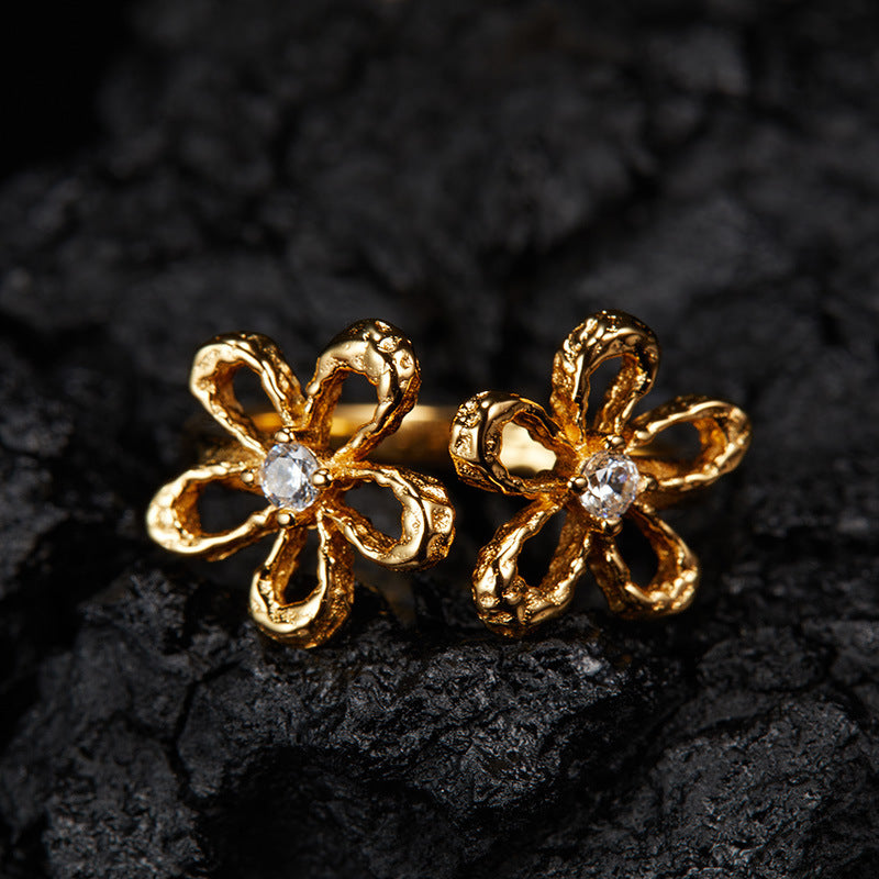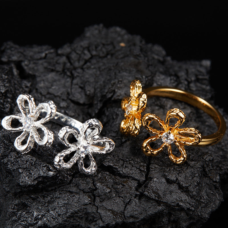 zensoullab Korean Version S925 Sterling Silver Zircon Colorful Gemstone Collarbone Chain Fashion Sweet Hollow Small Flower Pendant Necklace for Women