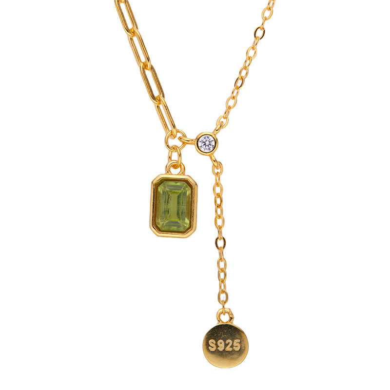 zensoullab S925 Inlaid Tassel Gemstone Series Necklace for Women Natural Black Spinel Peridot Collarbone Chain Jewelry
