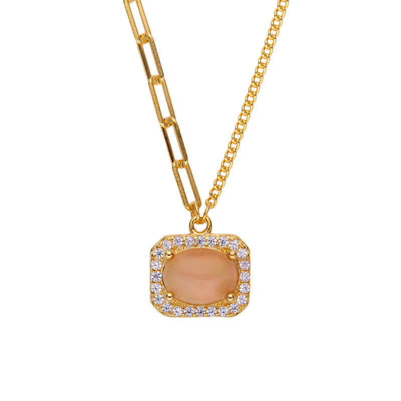 zensoullab Vintage Fresh Colorful Gemstone S925 Sterling Silver Inlaid Natural Opal Jewelry Necklace for Women Non-Fading Versatile Collarbone Chain