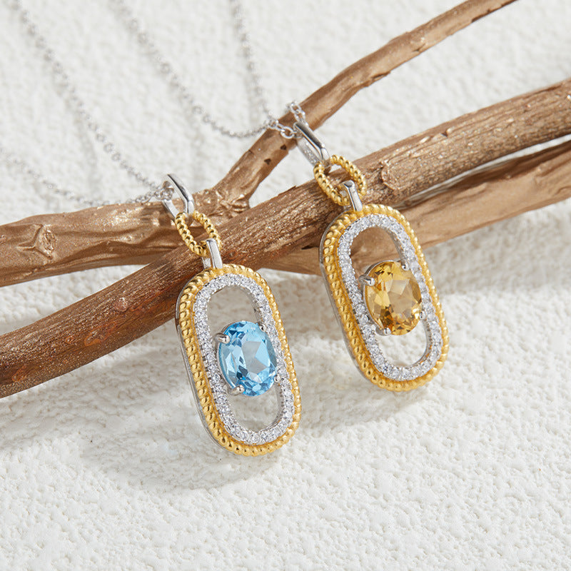 zensoullab French Retro S925 Sterling Silver Inlaid Natural Gemstone Yellow Crystal Topaz Pendant Necklace for Women Hot-Selling Jewelry