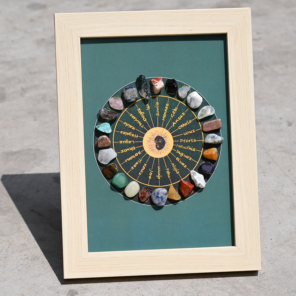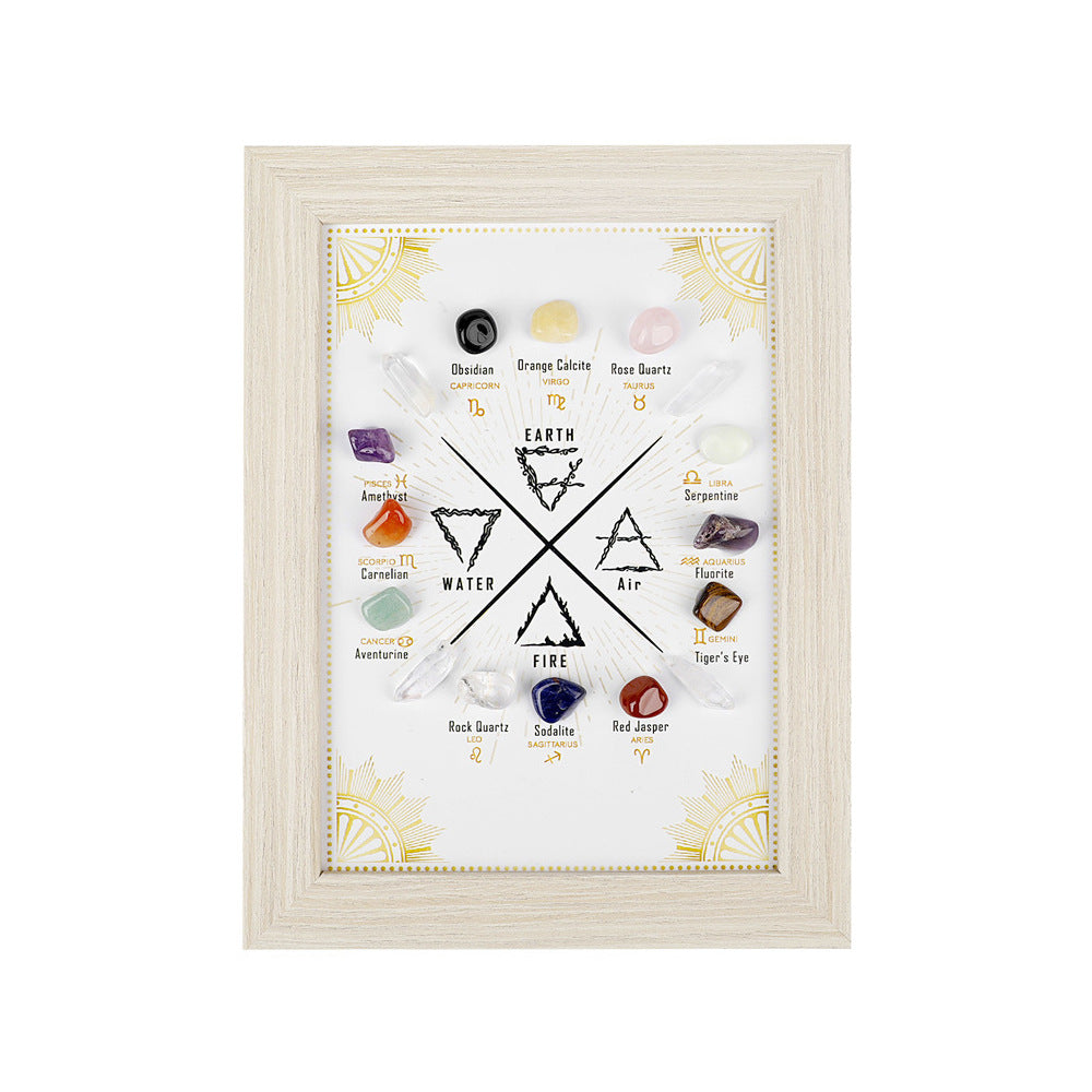 zensoullab Meditation Natural Raw Stone Specimen Frame Ornament Natural Crystal Mineral Colorful Seven-Color Stone Picture Frame Display Stand