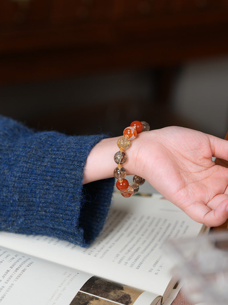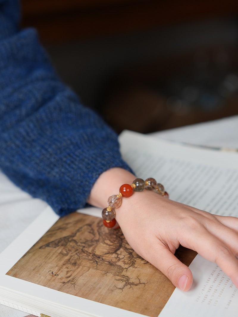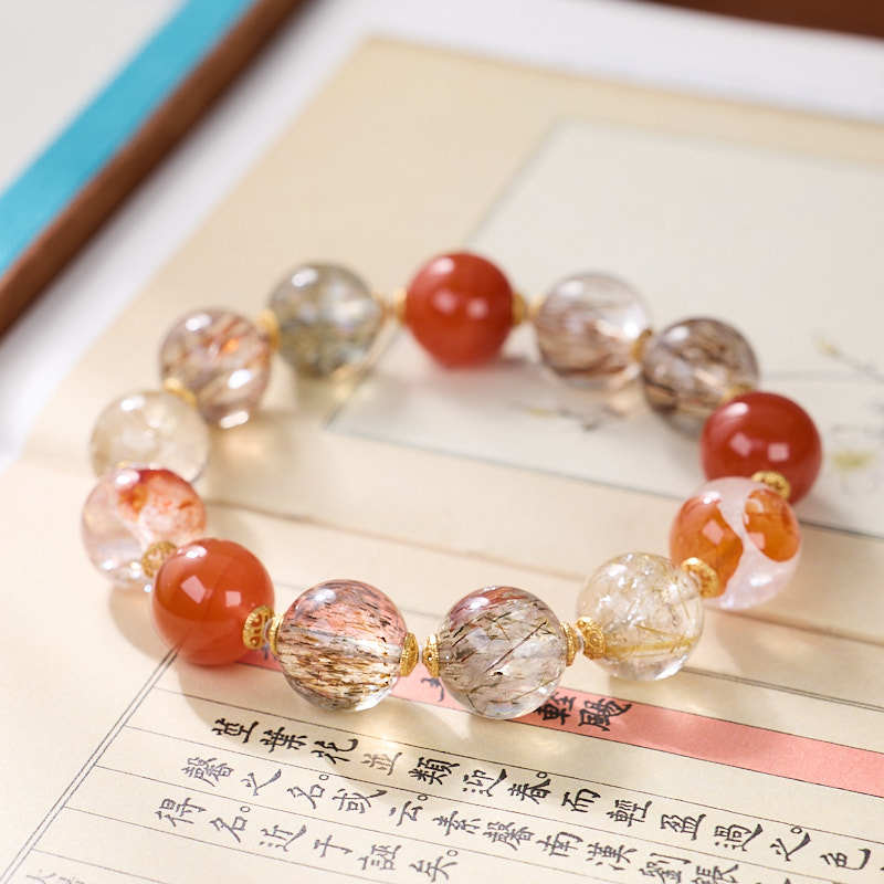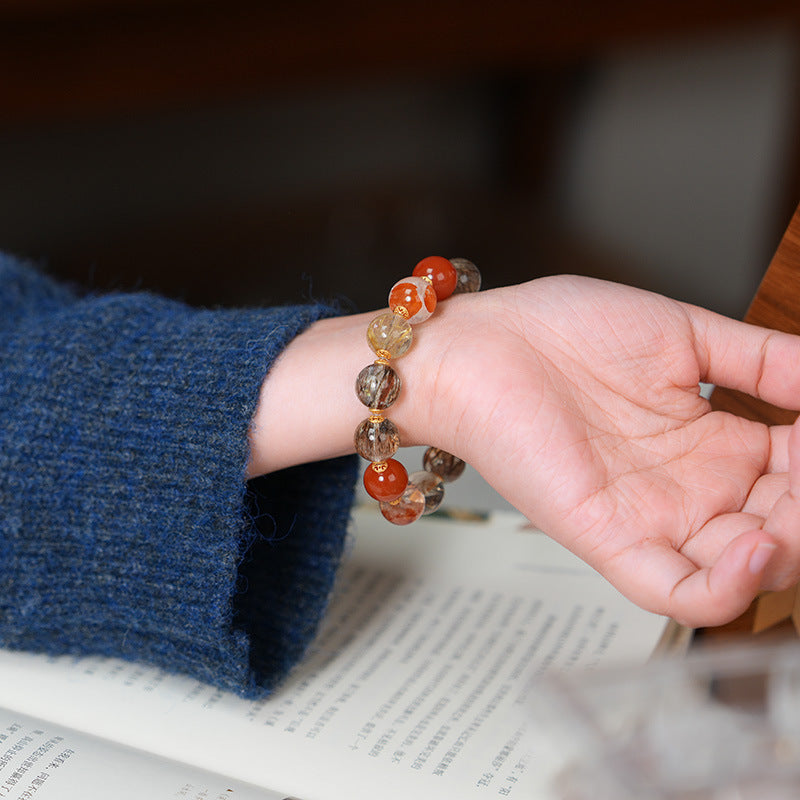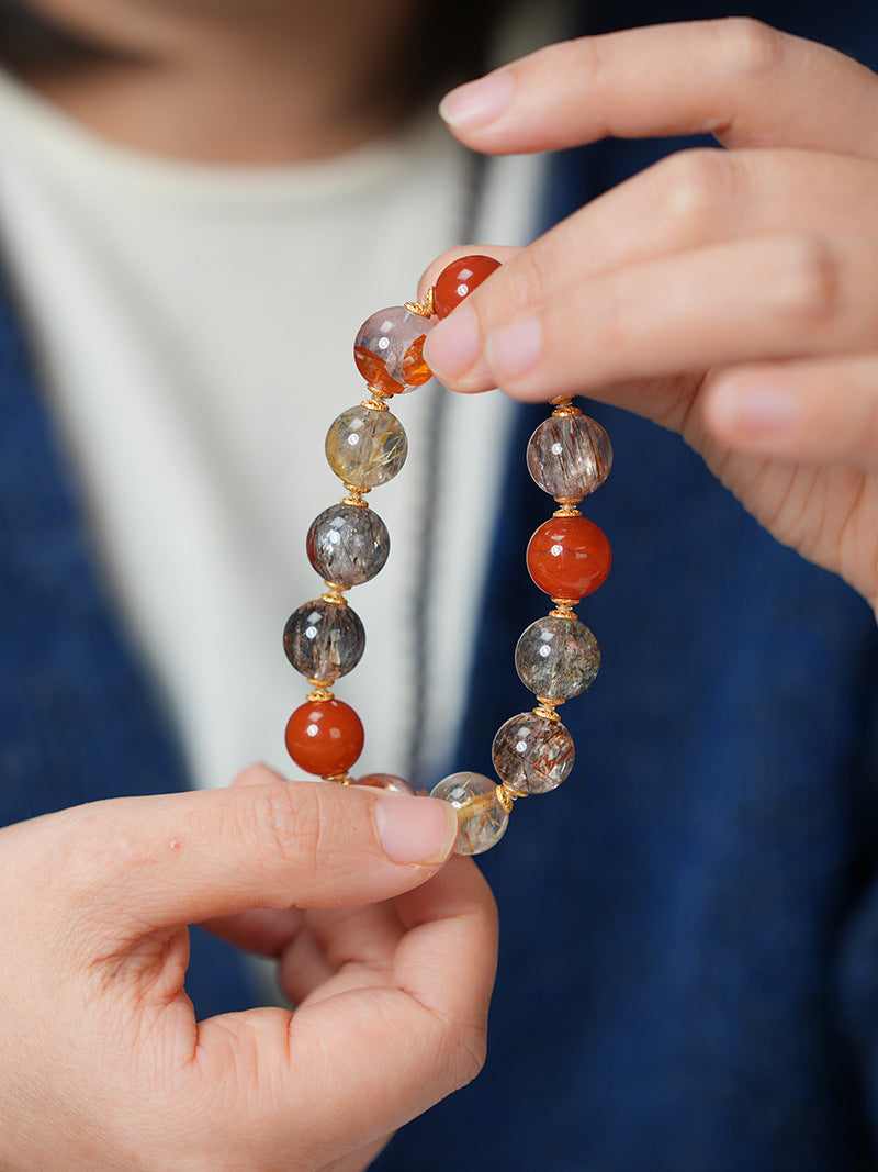 zensoullab Natural Black Gold Super Seven Crystal Bracelet for Women Red Glue Flower Gold Rutilated Quartz Full Flesh Southern Red Multi-Gemstone Bracelet