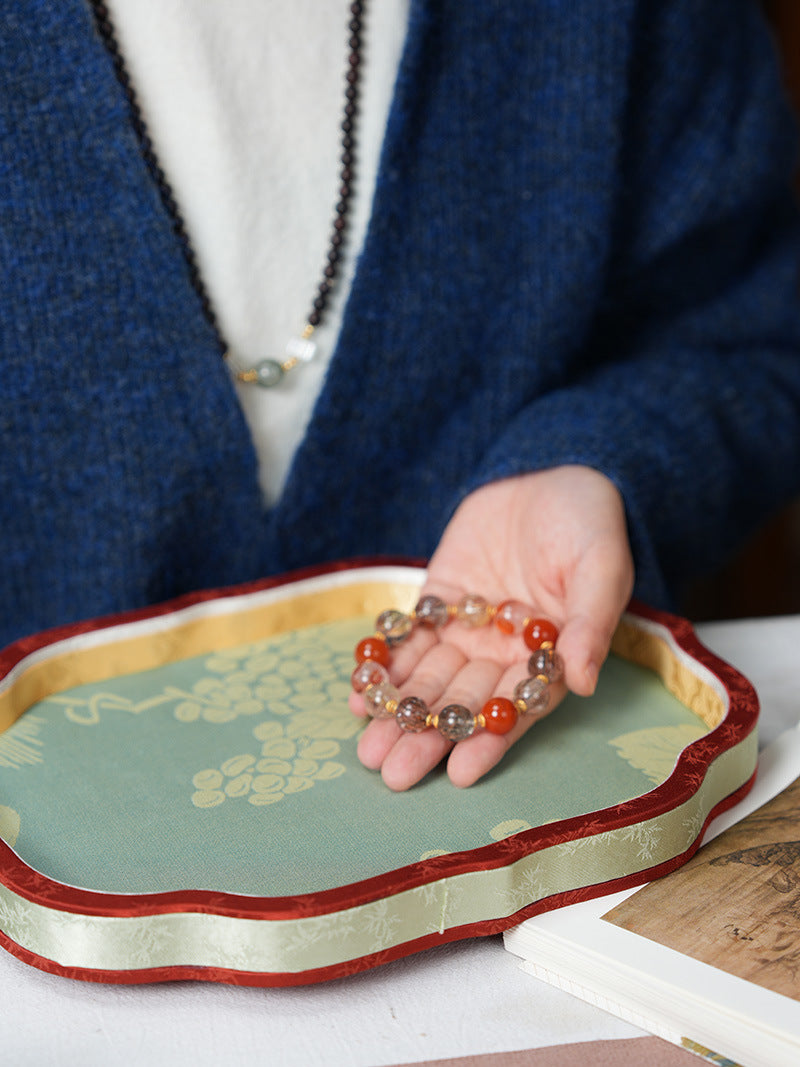 Main Materials: Black Crystal Super Seven, Southern Red Agate, Red Glue Flower, Golden Rutilated Quartz