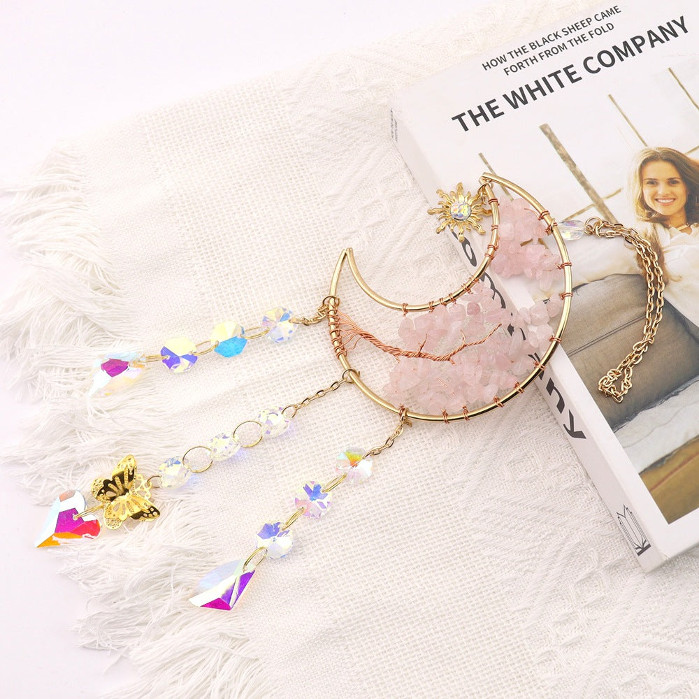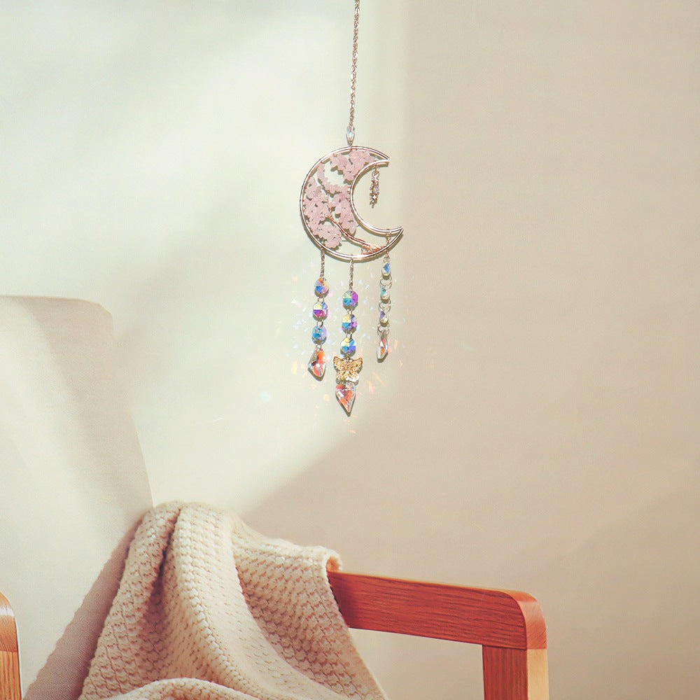 zensoullab Natural Crystal Gravel Moon Wind Chime Crafts Ornaments Sunlight Pendant Amethyst Sun Catcher T65