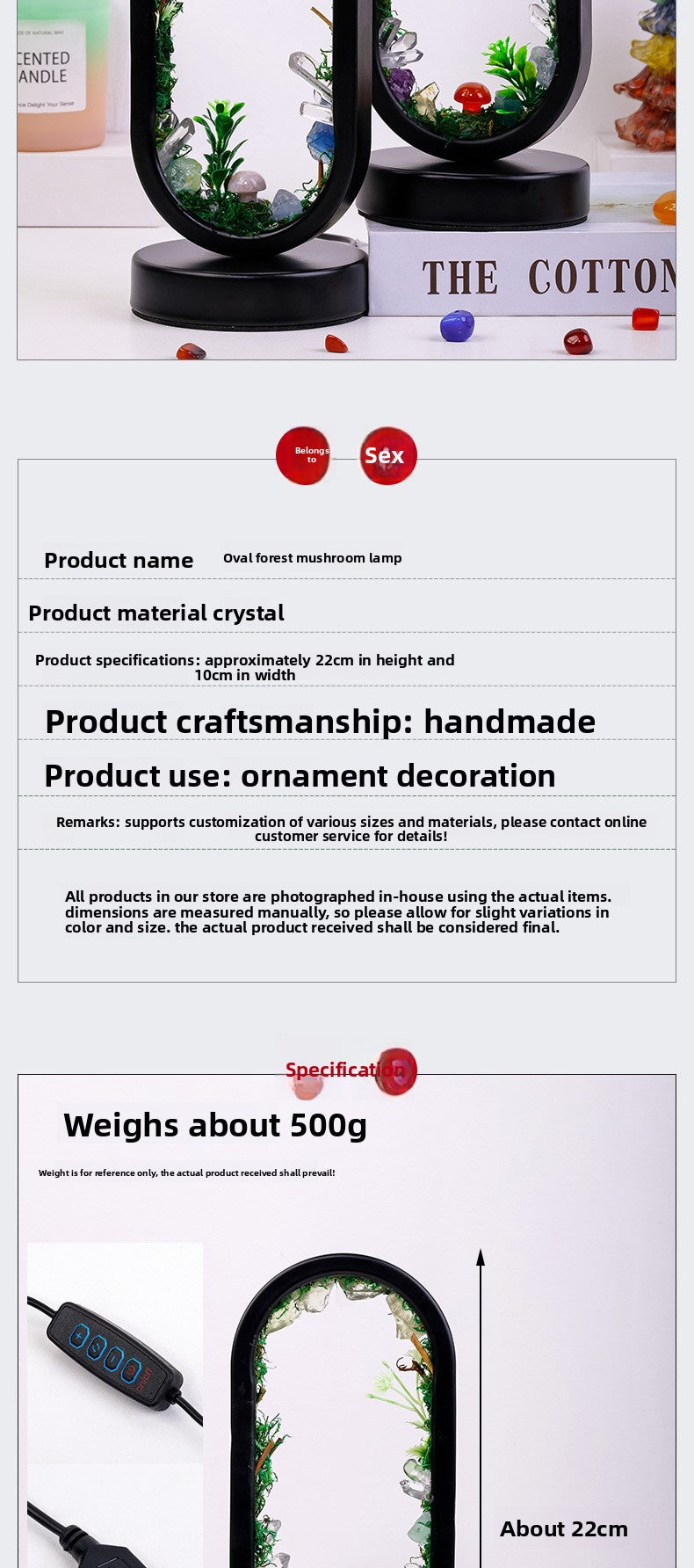 zensoullab Natural Crystal Raw Stone Oval Forest Mushroom Lamp Home Decoration Atmosphere Night Light Bedside Lamp Ornament