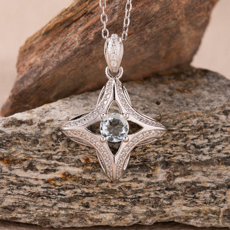 zensoullab Natural Sapphire Diopside Topaz Aquamarine Colorful Gemstone Necklace for Women S925 Silver Star Pendant