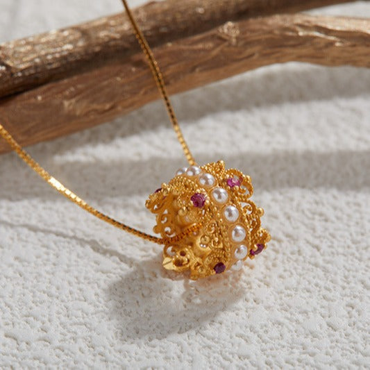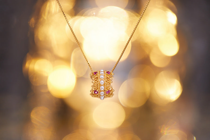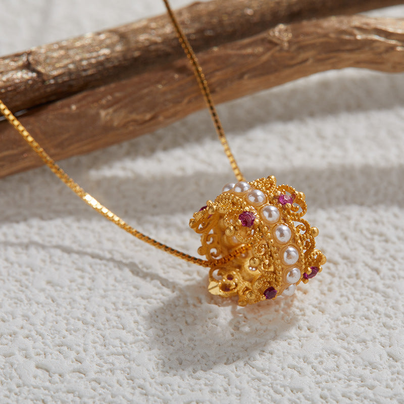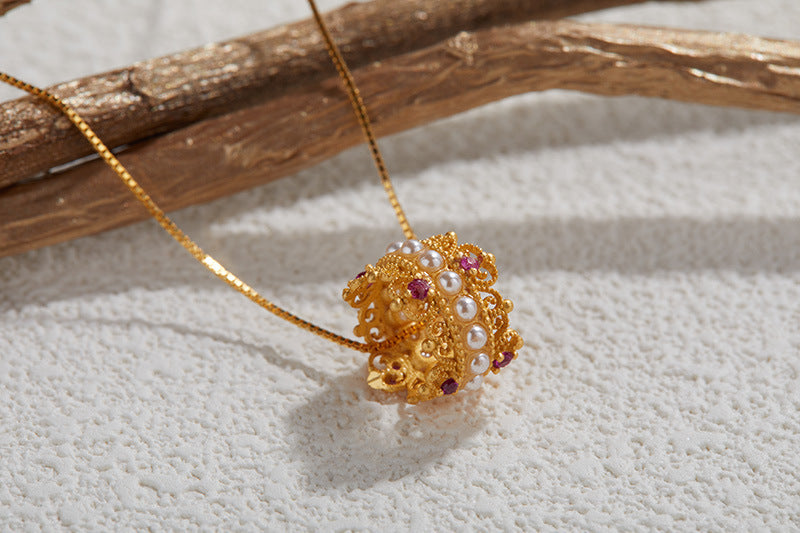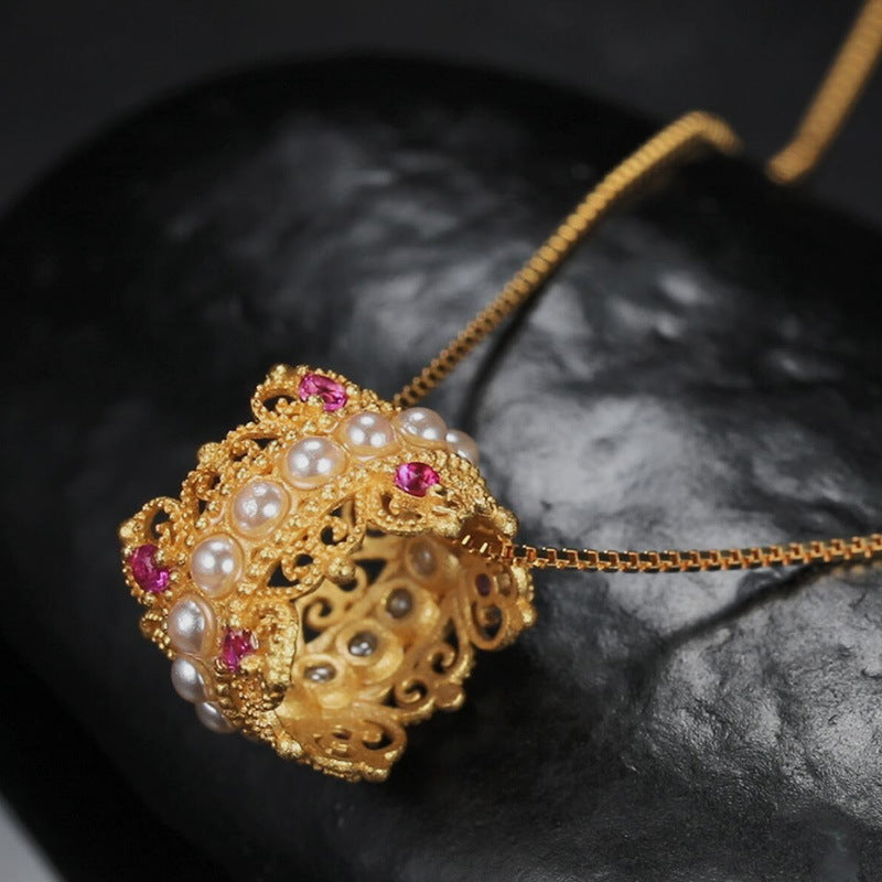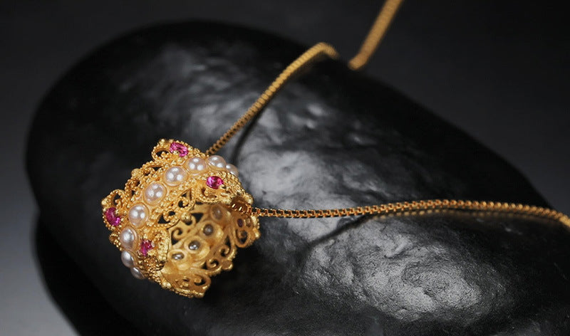 zensoullab S925 Sterling Silver Ancient Gold Necklace for Women Vintage Hollow National Trend Versatile Elegant Pendant Jewelry