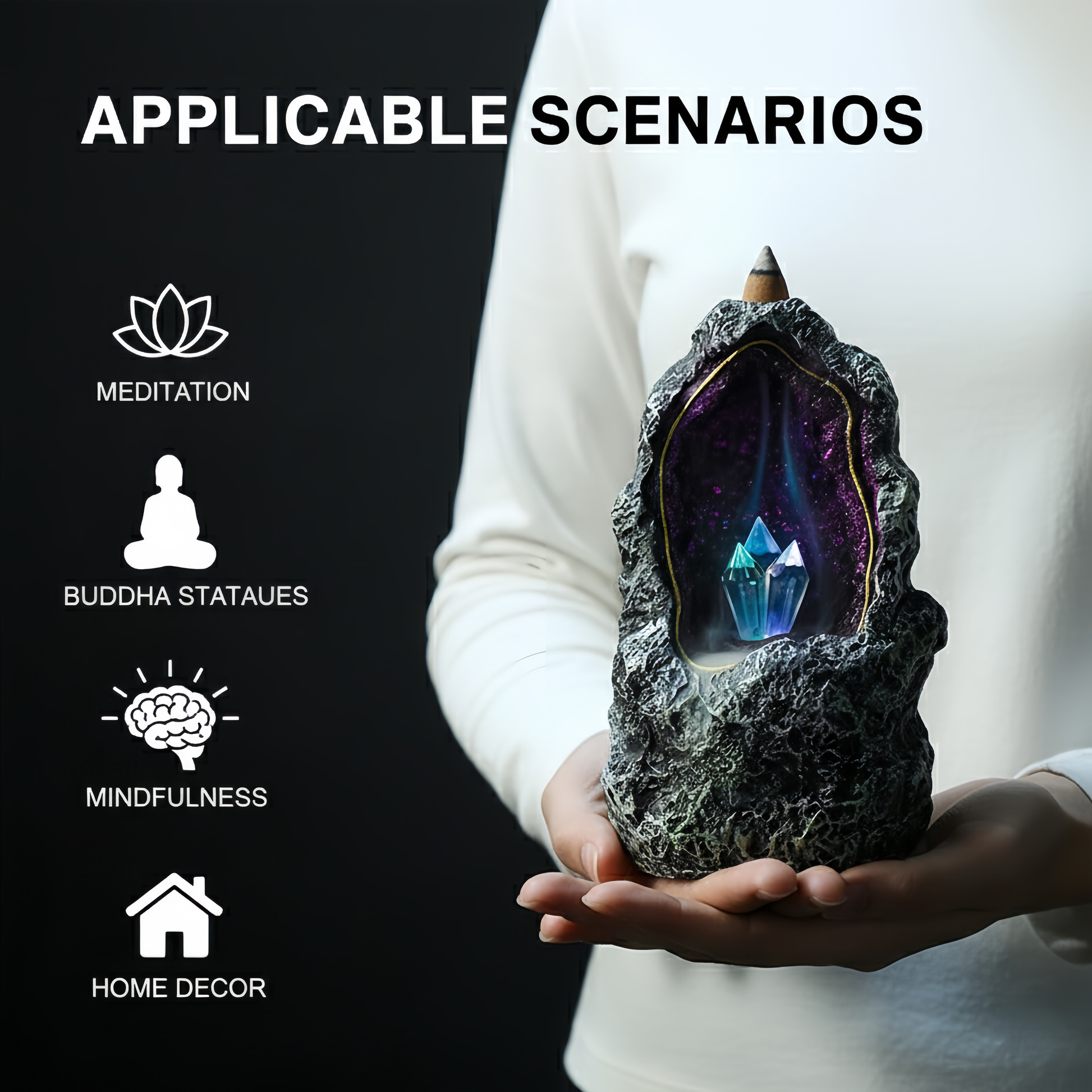 backflow incense burner, smoke waterfall incense burner, crystal geode incense holder, LED incense burner,meditation incense holder, waterfall smoke fountain, resin cone holder, zen decor gift