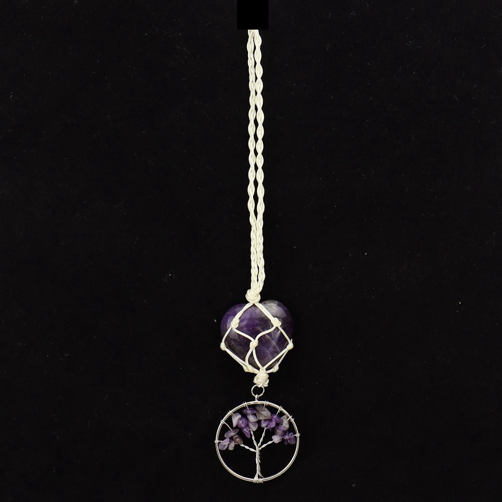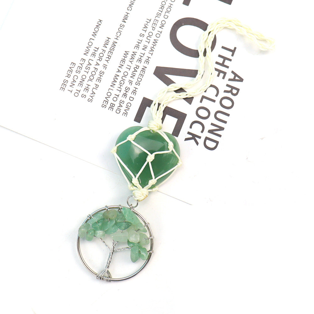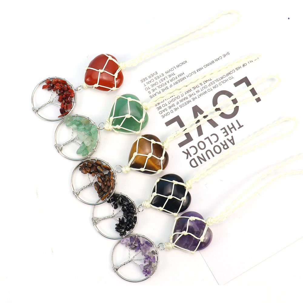zensoullab Natural Crystal Heart-shaped Woven Net Bag Tree of Life Pendant Car Hanging Bag Accessories