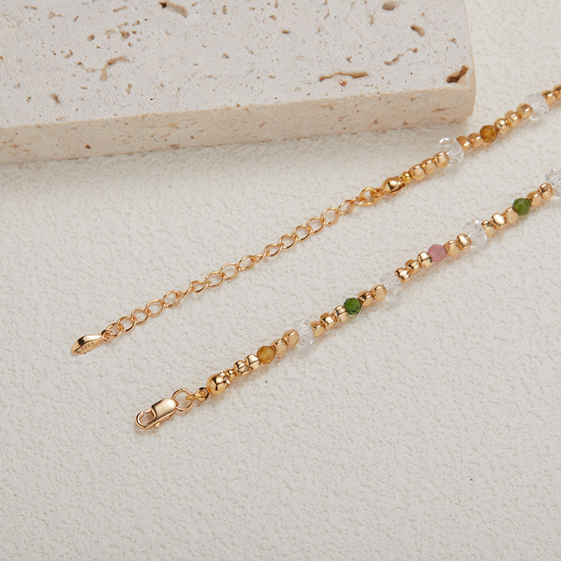 zensoullab Original Design S925 Sterling Silver Natural Tourmaline White Crystal Colorful Gemstone Bracelet for Women Exquisite Handmade Beaded