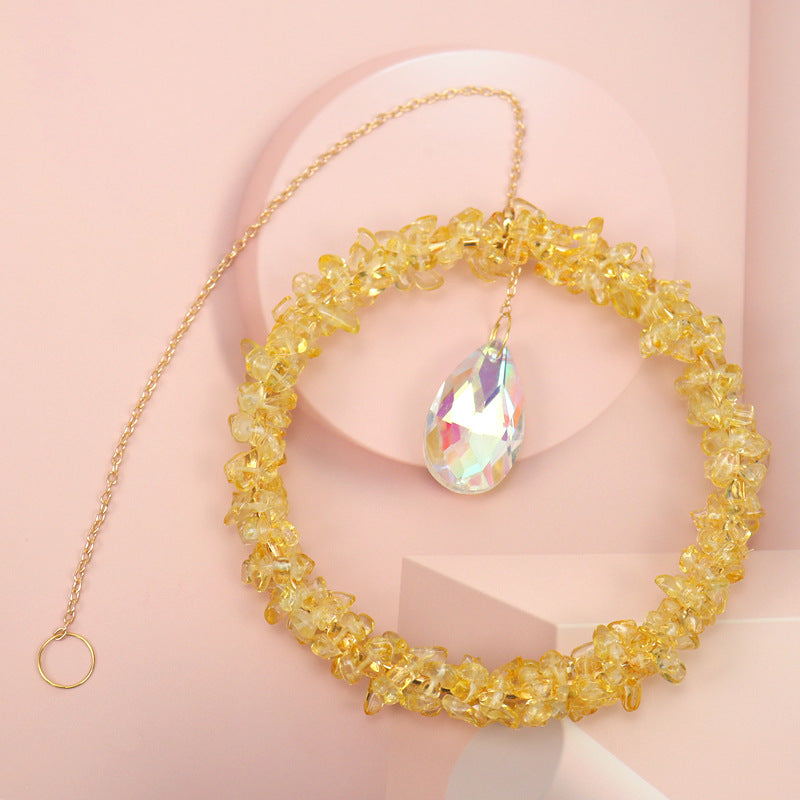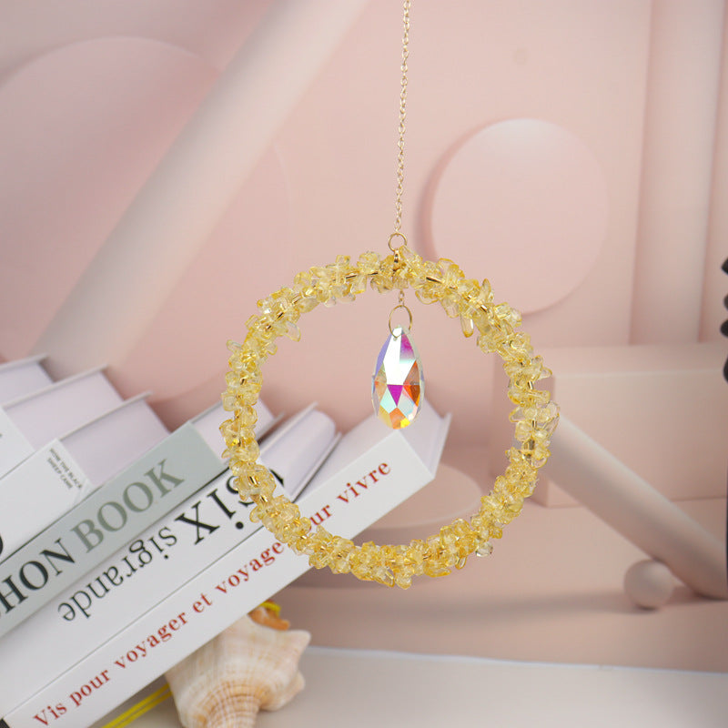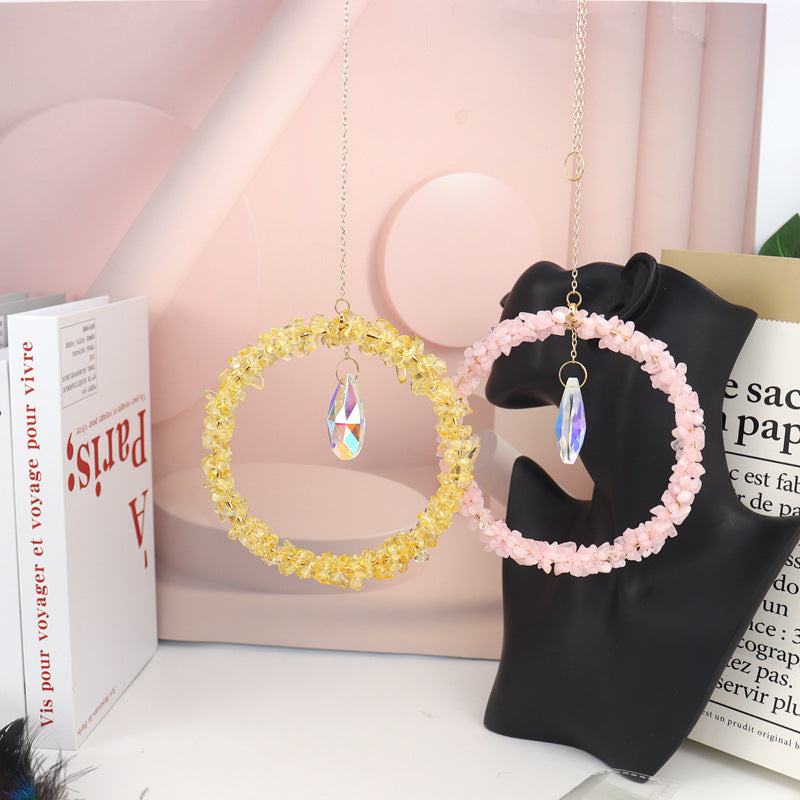 zensoullab Sun Catcher Gardening Crafts Crushed Stone Large Circle AB Color Crystal Water Drop Lighting Pendant