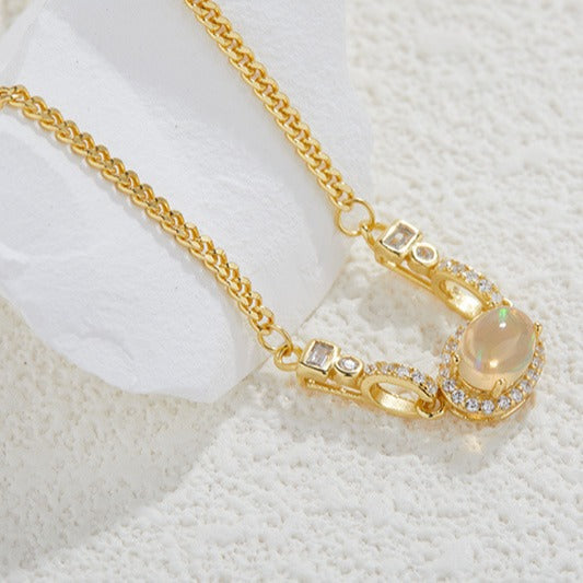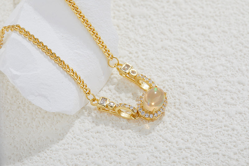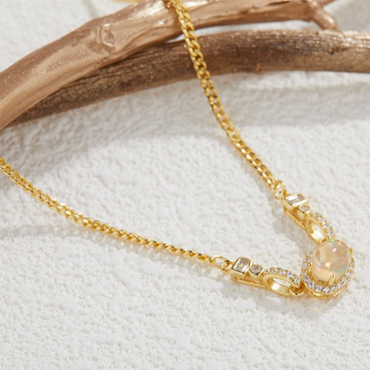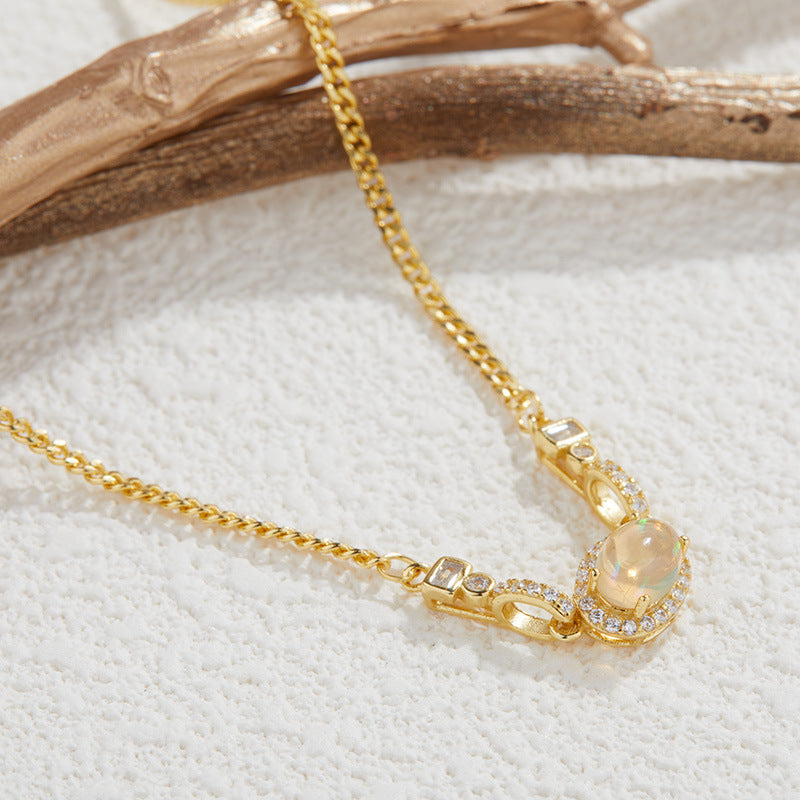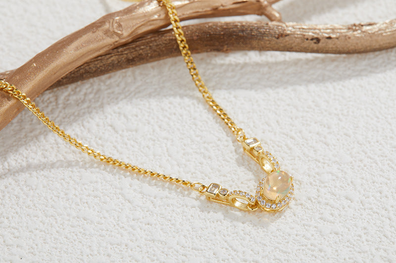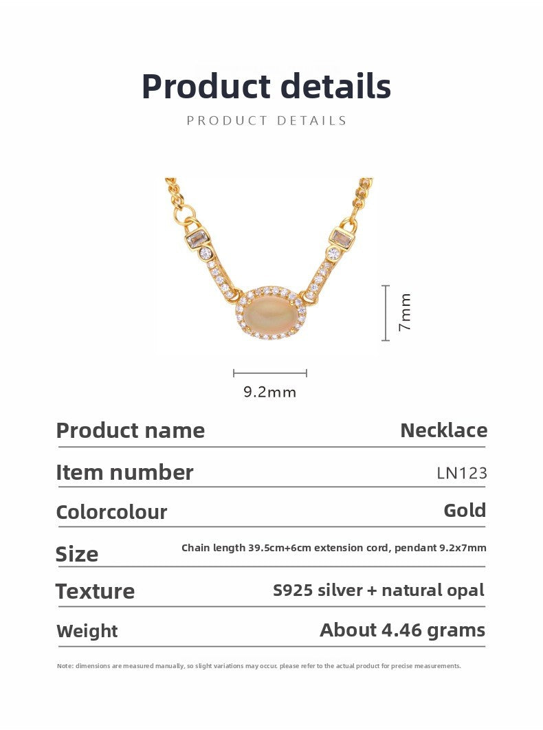 zensoullabs 925 Sterling Silver Inlaid Natural Opal Cabochon Pendant for Women Vintage Light Luxury Palace Style Necklace Accessory