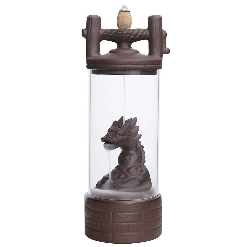 zensoullab Purple Clay Backflow Incense Burner Home Decor Ornament Craft Creative Windproof Cover Dragon Backflow Incense Burner