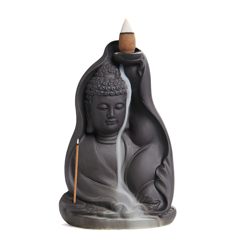 zensoullab New Purple Clay High Mountain Water Flow Backflow Waterfall Incense Burner Creative Maitreya Buddha Sandalwood Backflow Incense Burner Ornament