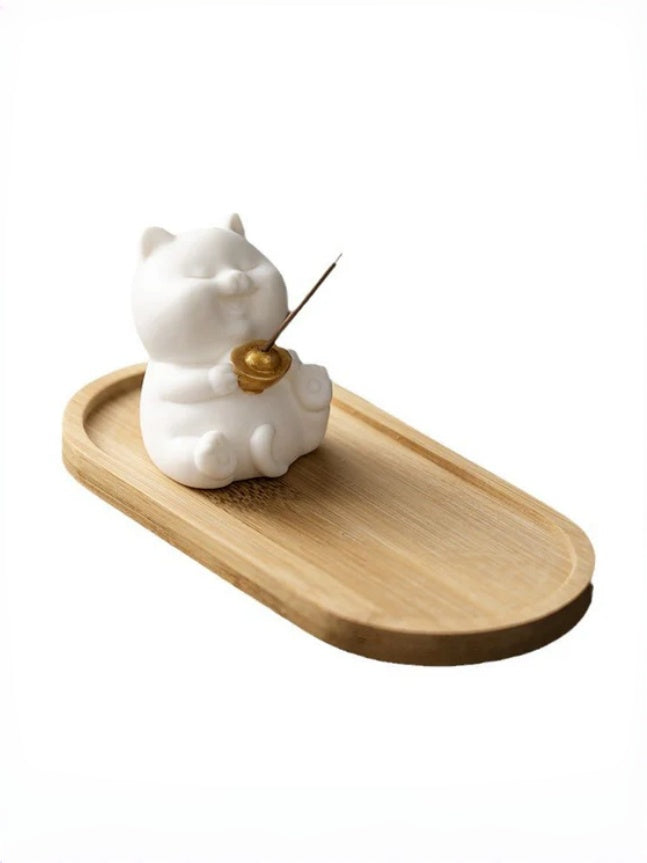 zensoullab Cute Forbidden City Kitten Ceramic Incense Holder Aromatherapy Burner Ornament Soft Healing Tea Table Tea Pet Indoor Incense Burner