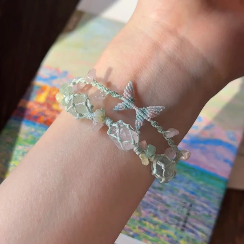 zensoullab Butterfly Stone Secret Double Layer Woven Pink Crystal Bracelet Natural Stone Heavy Craft Hot Style Fresh Versatile Gift for Friends