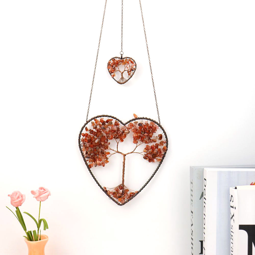 zensoullab Natural Crushed Stone Crystal Heart-shaped Tree of Life Dream Catcher Hanging Decoration Curtain Pendant