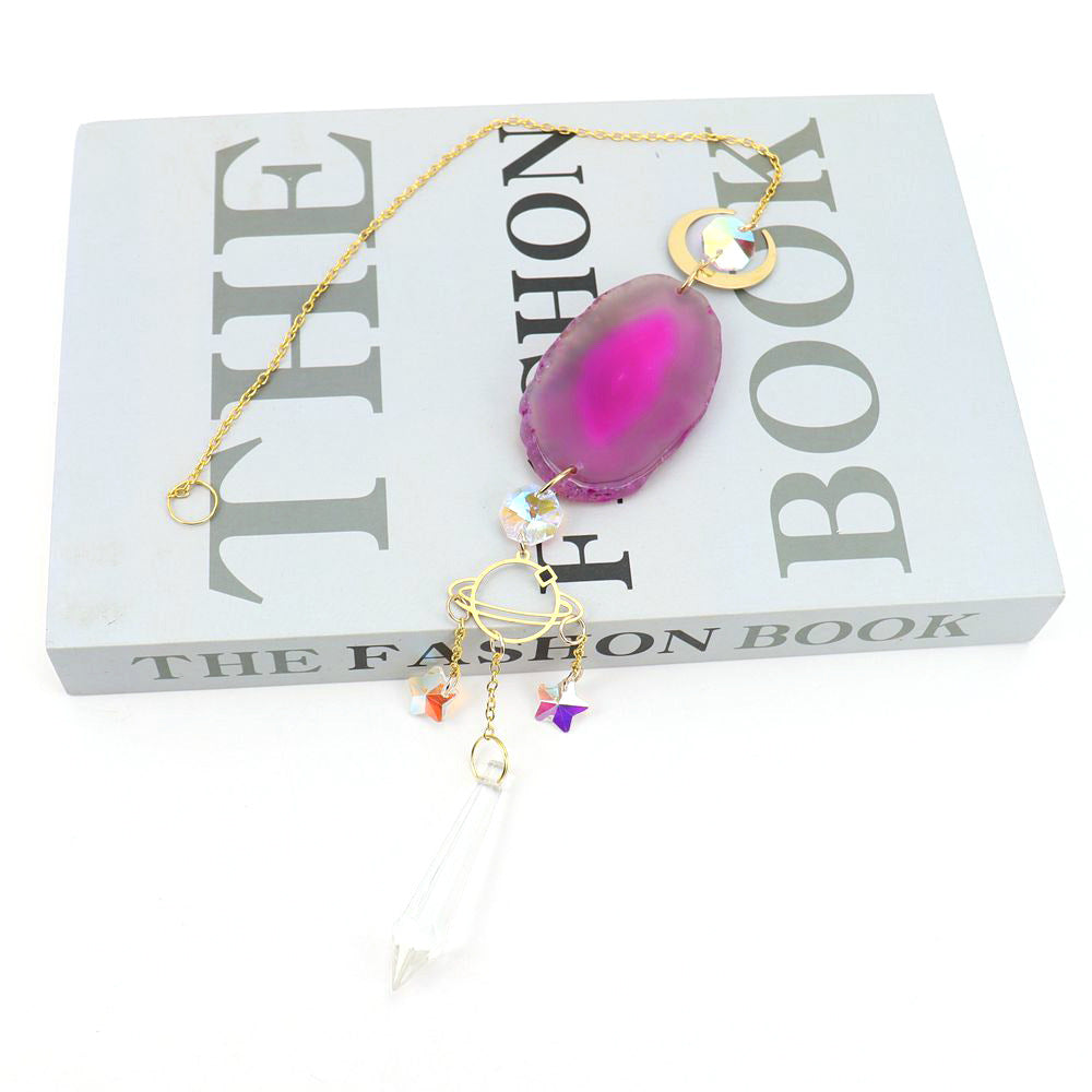 zensoullab Natural Crystal Agate Slice Hollow Moon Sun Catcher Light Gathering Ornament Hanging Prism Garden Pendant